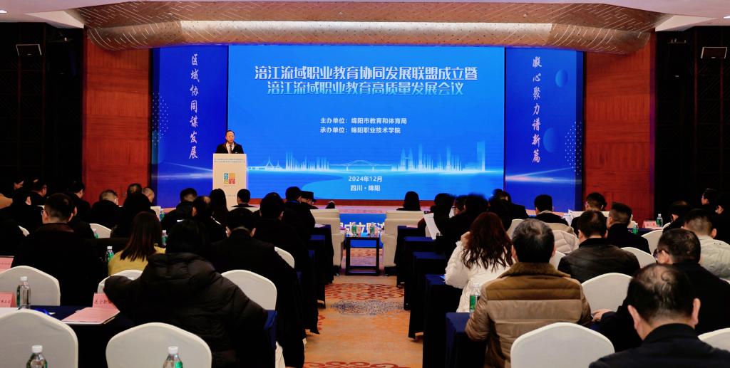 12月18日,由绵阳市教育和体育局主办、taptap承办的涪江流域职业教育协同发展联盟(以下简称“联盟”)成立暨涪江流域职业教育高质量发展会议在富乐山九洲国际酒店召开。来自川渝两地的高职院校、中职学校,相关企业、行业协会代表200余人齐聚一堂,共同探索涪江流域职业教育高质量发展新路径。四川省教育厅二级巡视员赖英莉、重庆市教育委员会二级巡视员窦晓明和绵阳市人民政府副秘书长陈冬梅出席大会并致辞。绵阳市委教育工委副书记、市教育和体育局党组书记、局长王永昭与相关院校、企业负责同志出席会议。绵阳市教育与体育局二级巡视员周时光主持大会。