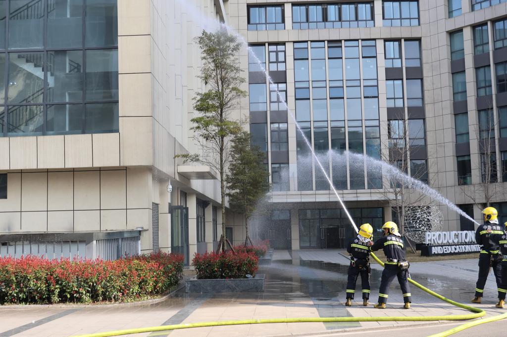 随着演练指令下达,校园瞬间拉响警报。教学楼内师生迅速响应,按照预定疏散路线,弯腰低姿、用手捂住口鼻,快速有序地向安全区域撤离。疏散全程有条不紊,未出现拥挤、踩踏等次生风险,充分展现出师生良好的应急素养;保卫、后勤等部门反应迅速、联动出击,消防通道畅通无阻,应急照明设备正常启用;医疗救护组迅速就位,模拟伤员救治流程规范,体现了部门协同作战能力。