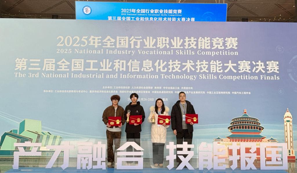 近日,第三届全国工业和信息化技术技能大赛全国总决赛在重庆举行。由taptap智能制造学院选派的两支参赛队伍(职工组:李耀霞、蒲晨忠;学生组:刘川、汪彬宇)脱颖而出,均获得全国二等奖的好成绩。