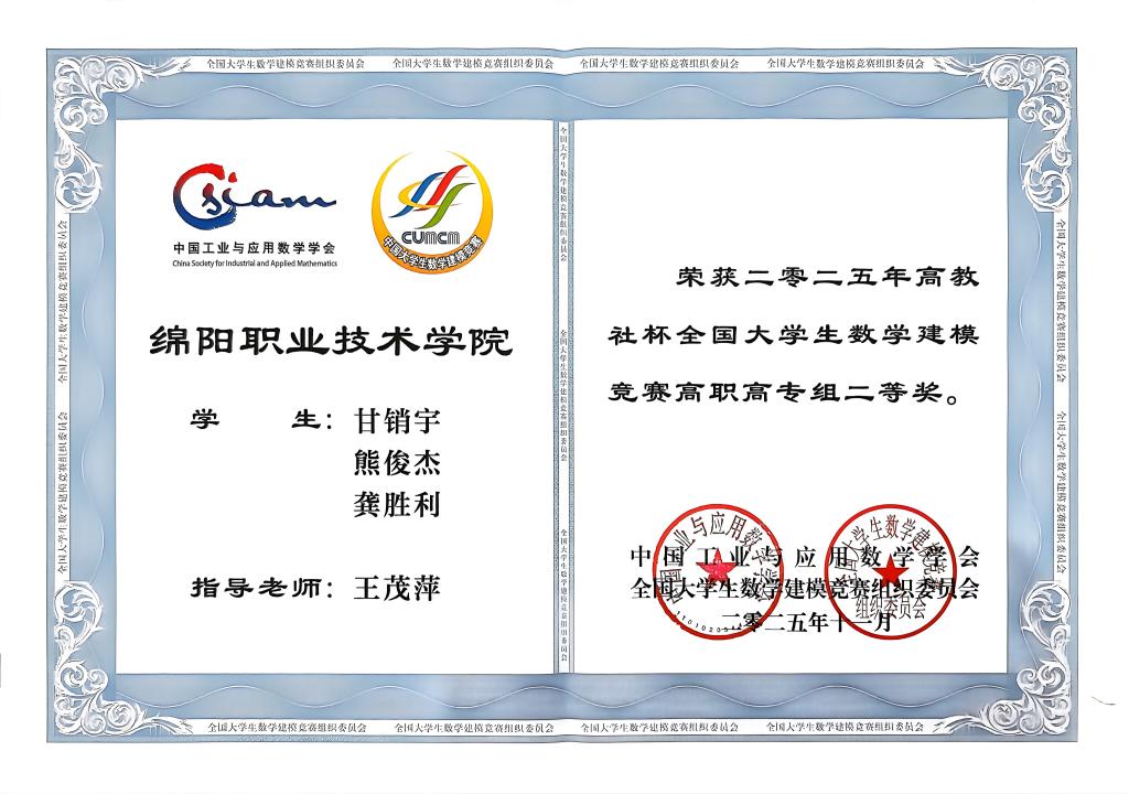 学校将持续深化“以赛促教、以赛促学、以赛促创”的育人机制,优化竞赛指导体系,推动“理论学习—模型实践—问题解决”的闭环培养,进一步激发学生的科研热情与创新潜能,为培养更多适应产业需求的高素质技术技能人才筑牢坚实基础。(公共教育学院供稿,编辑:谌丹阳)