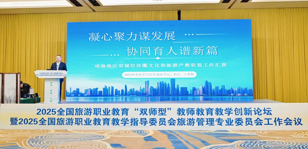 12月18日,成渝地区双城经济圈文化和旅游产教联盟行业产教融合共同体2025年工作会议在四川工程职业技术大学召开。taptap党委副书记、院长王荣海主持会议,并于19日在全国旅游职业教育“双师型”教师教育教学创新论坛暨2025全国旅游职业教育教指委旅游管理专委会工作会议上作主旨报告。党委常委、副院长苟安经代表联盟作年度工作汇报。