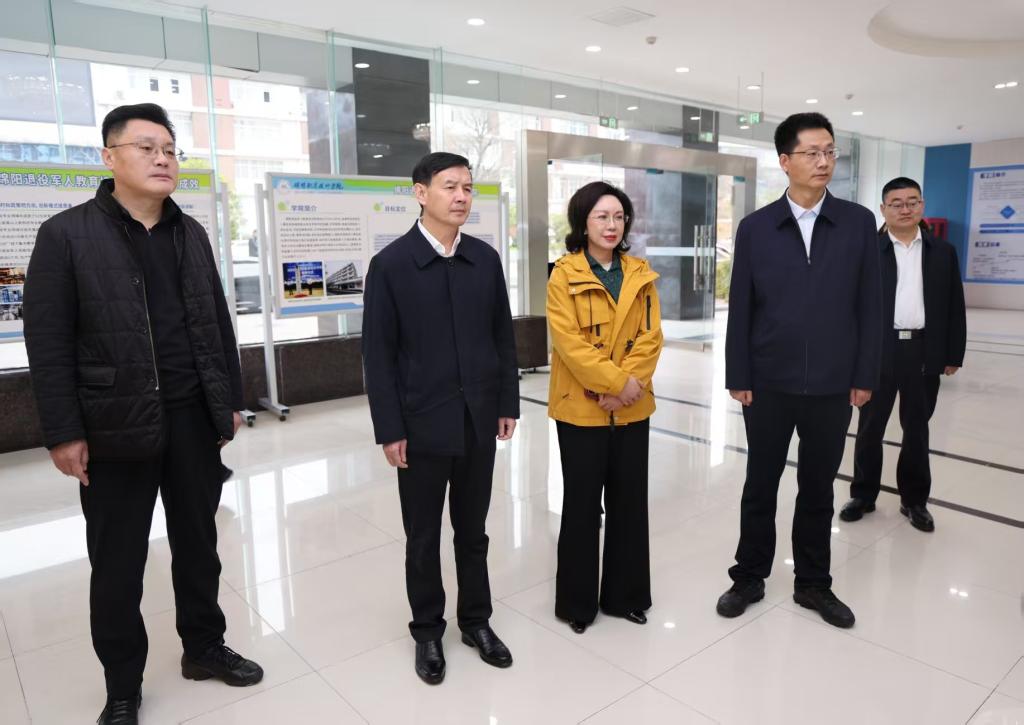 调研组一行认真观看学校退役军人培训宣传视频,阅读宣传展板,听取相关工作汇报,并实地参观了taptap材料工程学院、智能制造学院、电子信息学院实验实训场所。