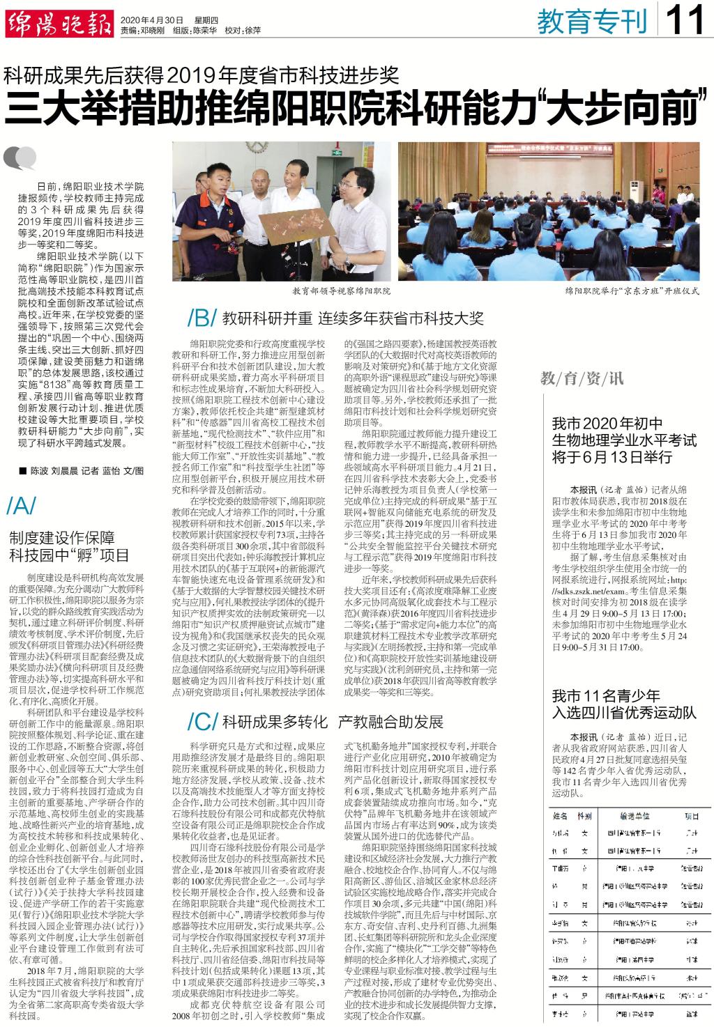 日前,学校教师主持完成的3个科研成果先后获得2019年度四川省科技进步三等奖,2019年度绵阳市科技进步一等奖和二等奖。近年来,在学校党委的坚强领导下,按照第三次党代会提出的“巩固一个中心、围绕两条主线、突出三大创新、抓好四项保障,建设美丽魅力和谐绵职”的总体发展思路,taptap通过实施“8138”高等教育质量工程、承接四川省高等职业教育创新发展行动计划、推进优质校建设等大批重要项目,教研科研能力“大步向前”,实现了科研水平跨越式发展。人民日报、绵阳日报、凤凰新闻、封面新闻、绵阳晚报等媒体对此事作了相关报道。