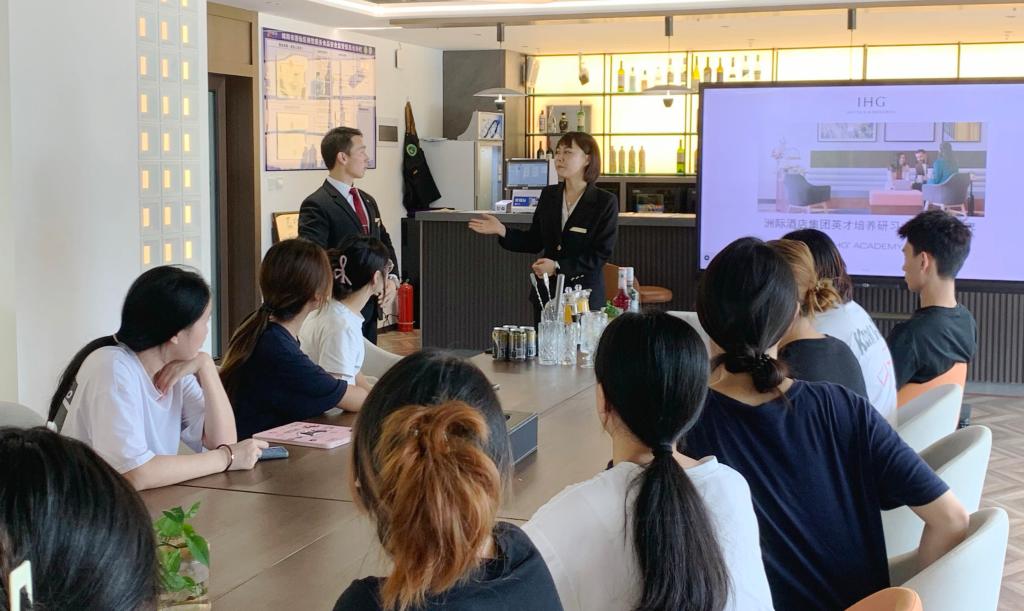 9月18日,旅游与管理学院“洲际英才班”秋季学期开课。第一课特邀成都世纪城洲际大饭店培训师沙库拉林为同学们讲授调酒和咖啡制作相关知识。