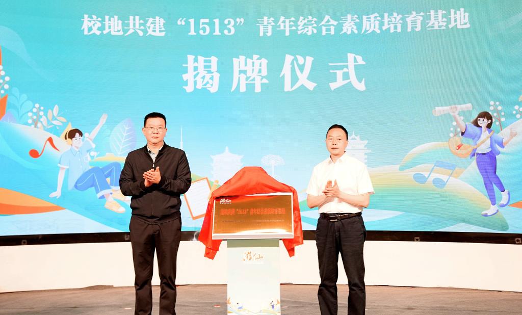 游仙区委常委、统战部部长、区总工会主席张明东与张明共同为“1513”青年综合素质培育基地揭牌并出席游仙区校地融合青春共进计划的启动仪式。