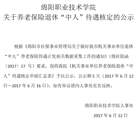 机关事业单位养老保险退休“中人”待遇核定申报汇总表