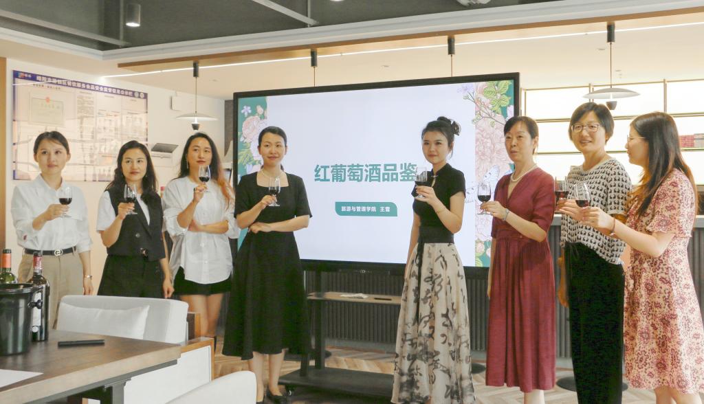 5月15日下午,旅游与管理学院在森·呼吸酒店多功能实训室举办红葡萄酒系列品鉴沙龙活动。旅游与管理学院党总支书记曹艳、学校各分工会教师代表参加本次活动。