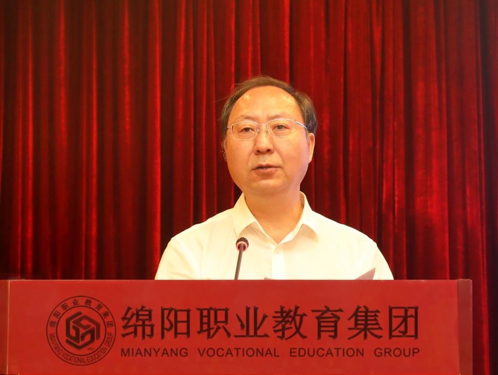 政府部门代表,绵阳市教体局一级调研员周时光在讲话中表示,绵阳职业教育集团自成立以来,经过十余年发展,成员单位已达到200余家,涵盖政府部门及园区、职业院校、科研院所、行业协会、企业等组织,累计培养技术技能人才近10万人,为成渝地区双城经济圈区域经济社会发展提供了重要的人才和技术支持。希望集团各成员单位以本次会议为契机,继续加强交流、深化合作,勇于改革、善于创新,积极探索多种形式的合作模式、治理结构和运行机制,全面增强集团活力和服务能力,为成渝地区经济社会发展作出更大的贡献。
